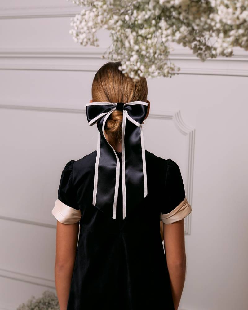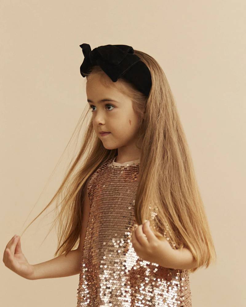 In dark moody colors and luxurious fabrics, these kid’s New Year’s Eve looks are ready for midnight! Velvets and tulles are decorated with glitter and star motifs or elevated with design details to start the New Year on a super chic note.