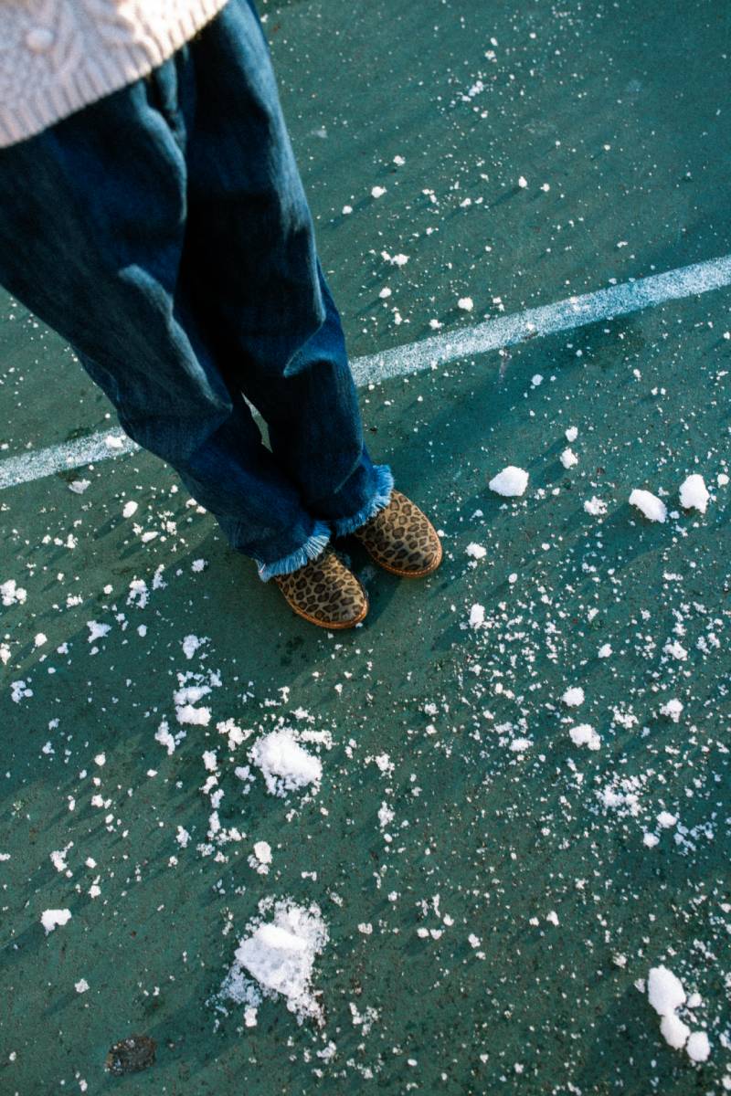 Olivia wearing a total look by Louise Misha. Valentina wearing an outfit, hat, and scarf from Wolf & Rita and a Bobo Choses coat.